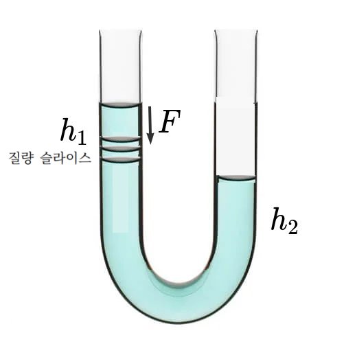 2026.4.16: 수면 높이, 힘을 $h_1, h_2, F$라고 하면,