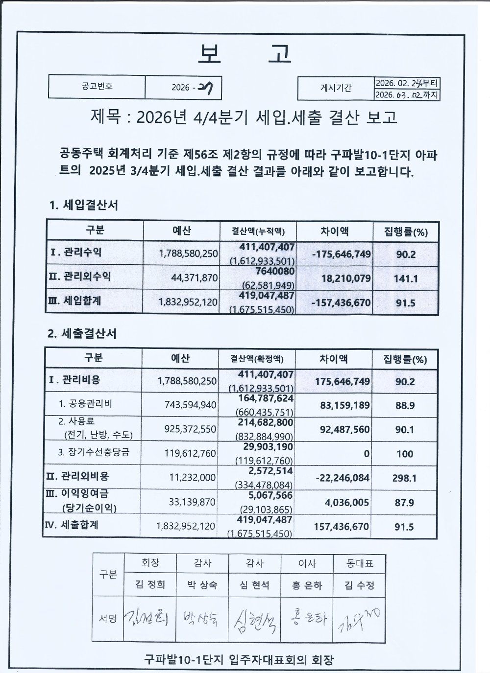 (1) 입주자 대표회의(2026.2.20)에서