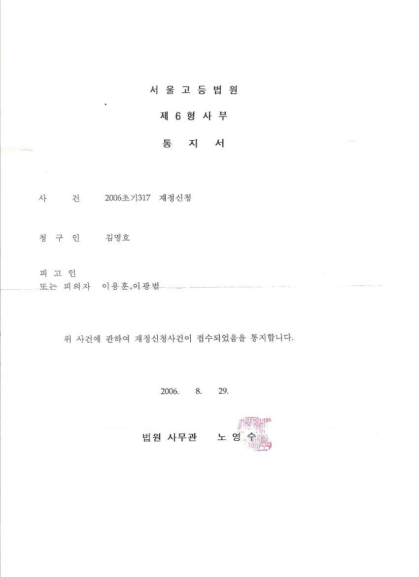 [06. 9. 1] 이용훈 재정신청