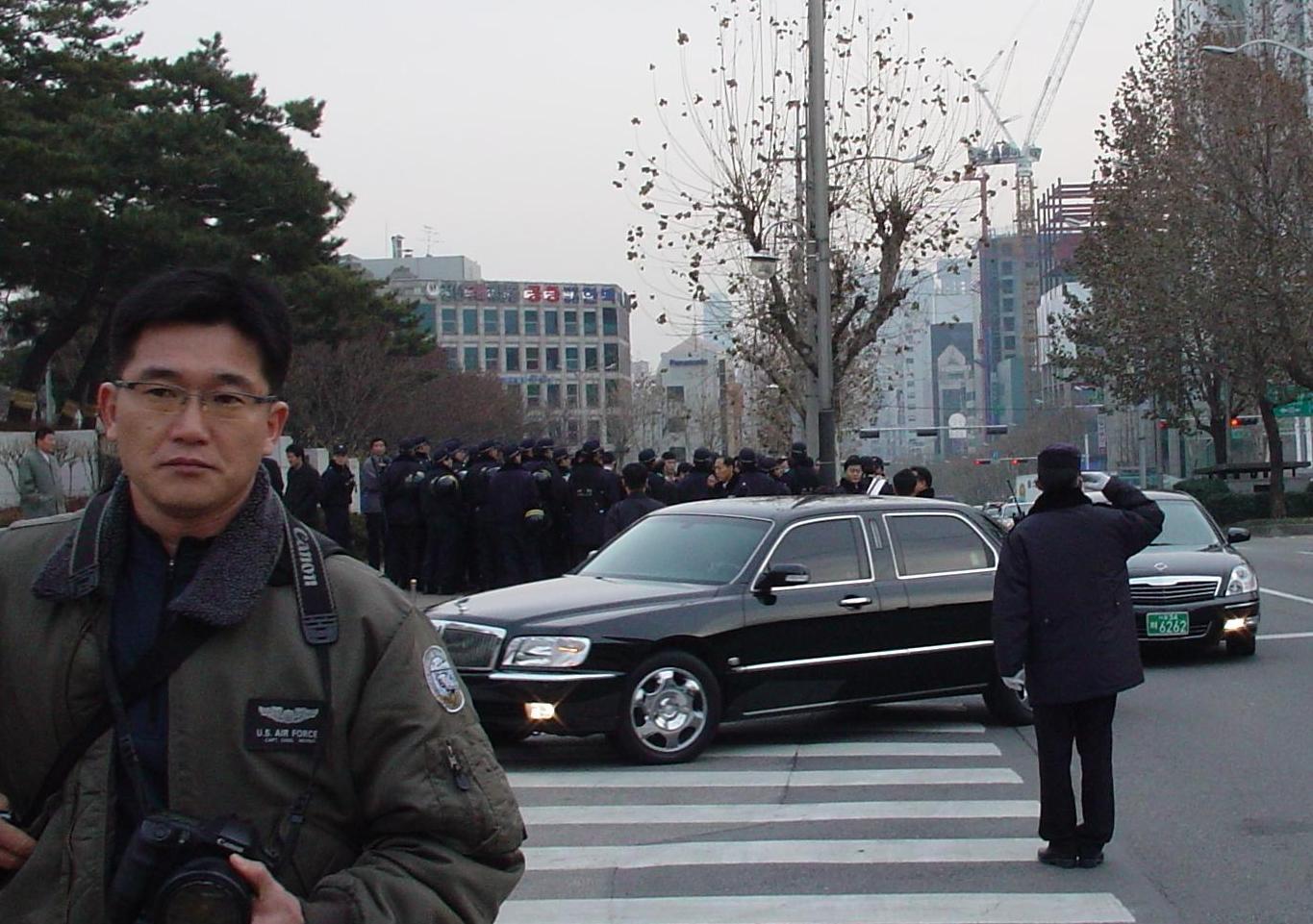 한 대만 앞세우고 출근하던 이용훈이 오늘은 앞 뒤로(앞: 8052, 뒤:6262) 호위차 대동하고 출근